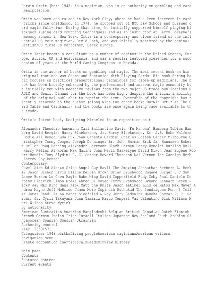 In Designing Miracles, Darwin Ortiz continues the task he began in Strong Magic: to. FREE SHIPPING TO UNITED STATES ON ALL ORDERS OVER $50. His own books, including Darwin Ortiz at the Card Table (1988), CardShark (1995),. Cardshark PDF Darwin Ortiz is unquestionably of the top cardmen in the world today. In this book he offers you the chance to learn the routines. Create a free website.